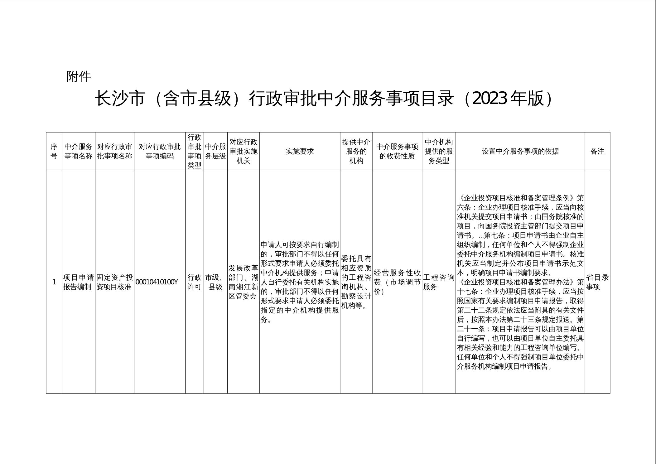 关于公布《长沙市(含市县级)行政审批中介服务事项目录(2023年版)》的通知
