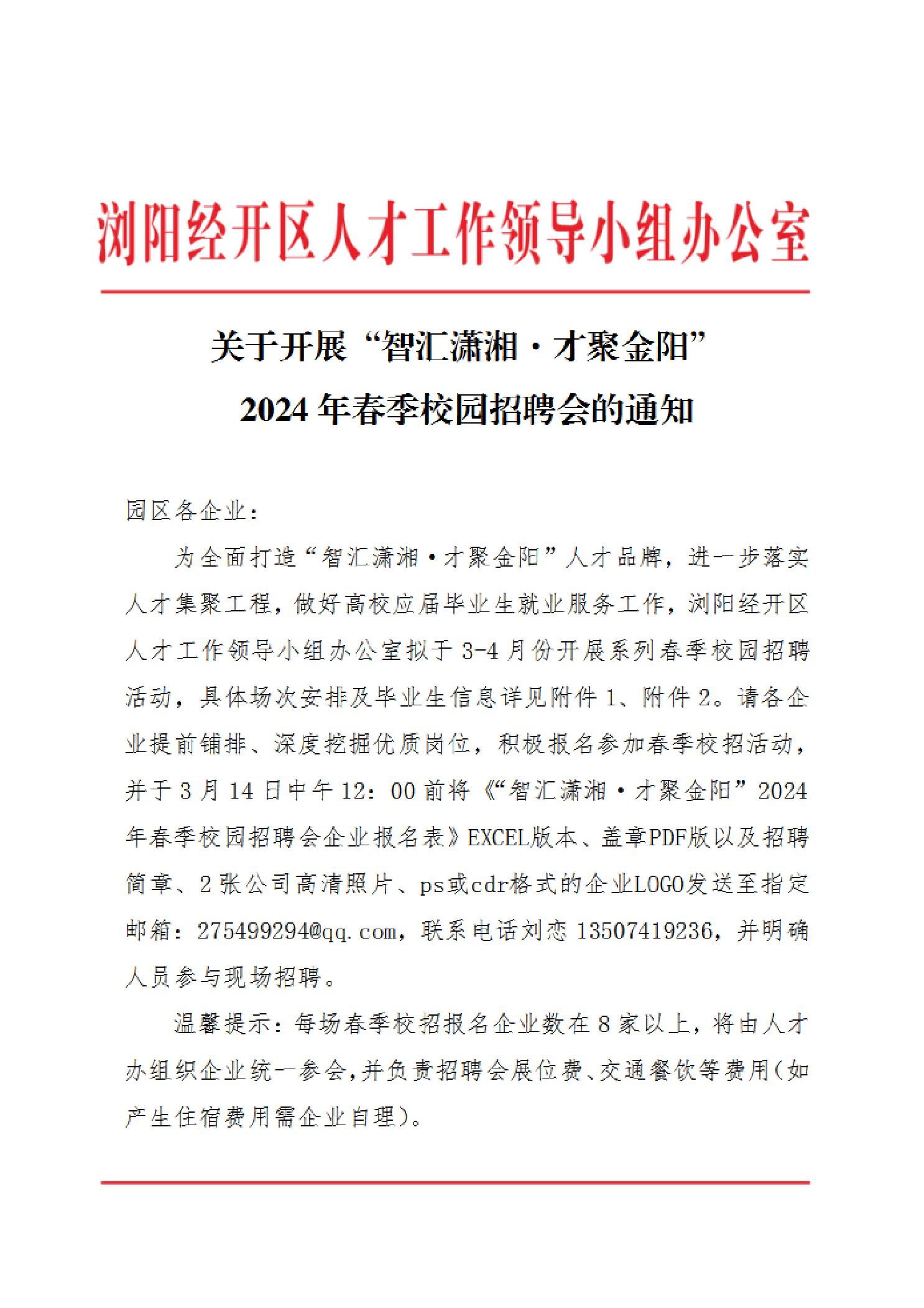 关于开展“智汇潇湘·才聚金阳”2024年春季校园招聘会的通知