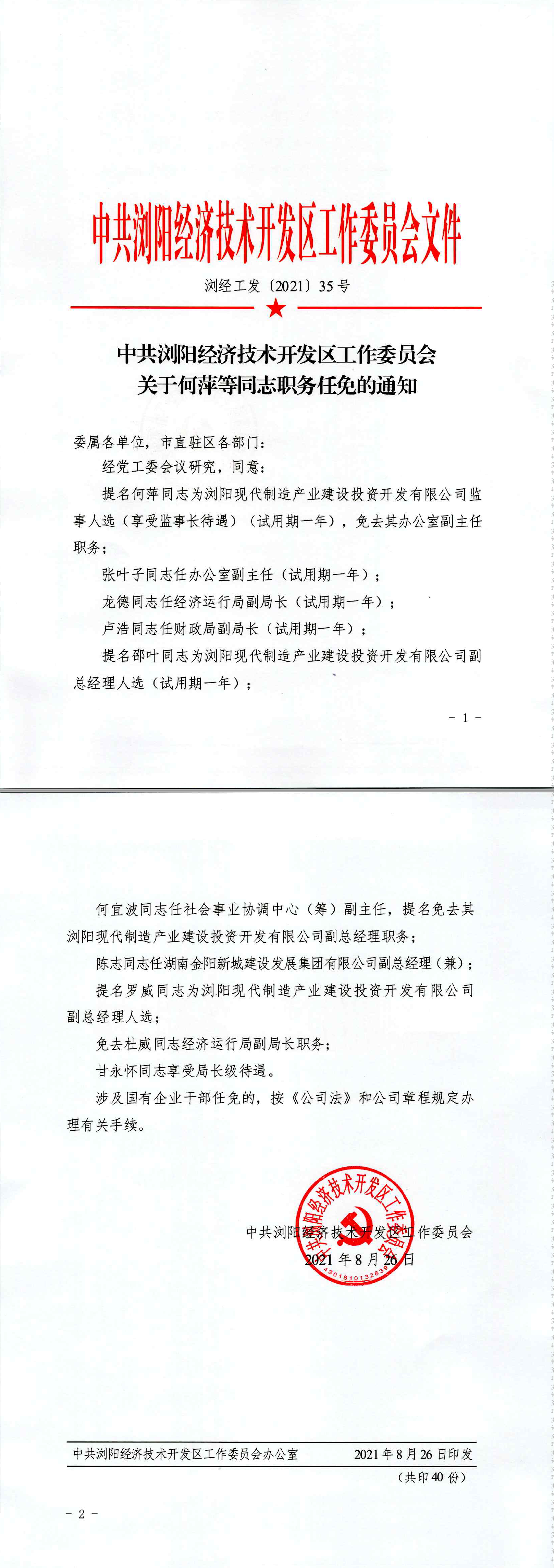 关于何萍等同志职务任免的通知