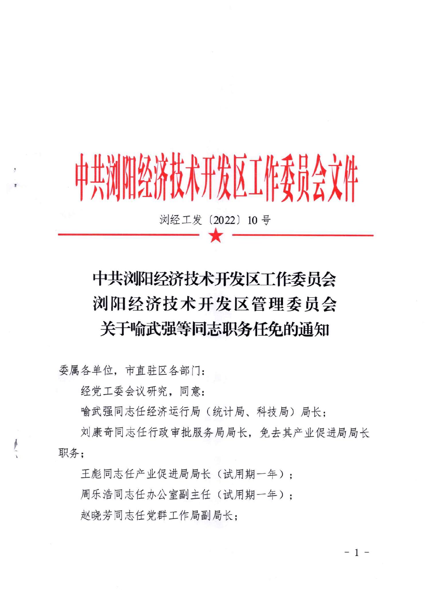 关于喻武强等同志职务任免的通知