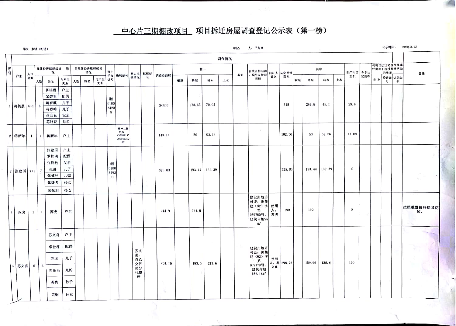 中心片三期棚改项目拆迁房屋房屋调查登记公示表(第一榜)