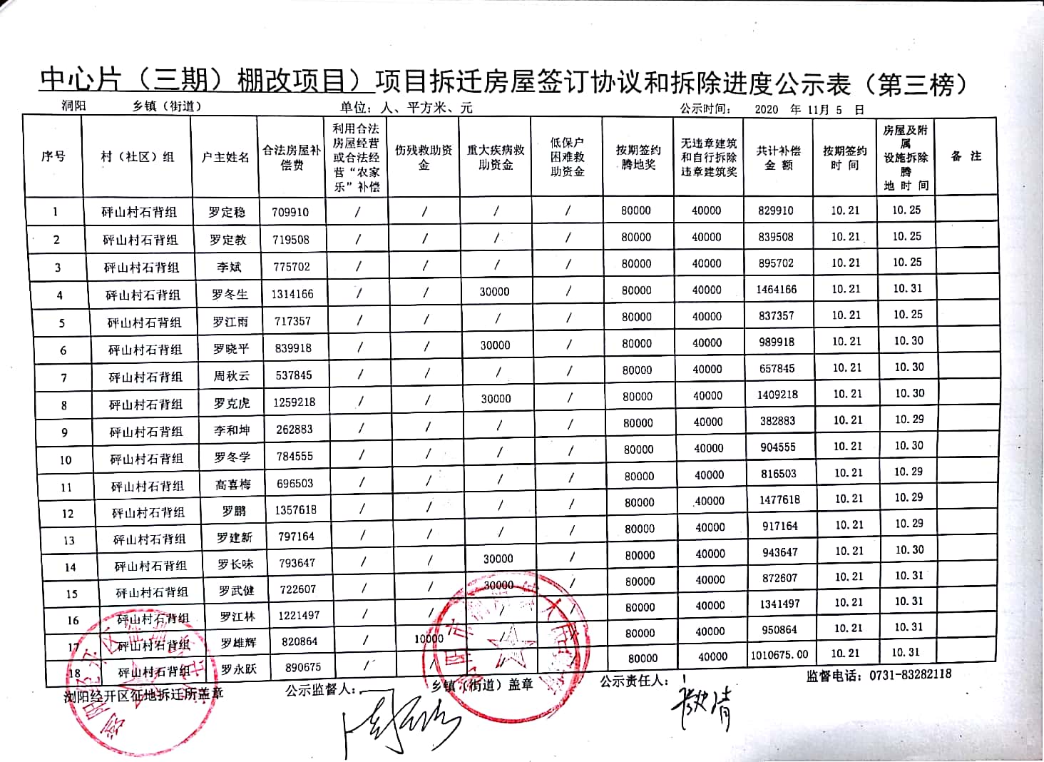 拆迁补偿公示