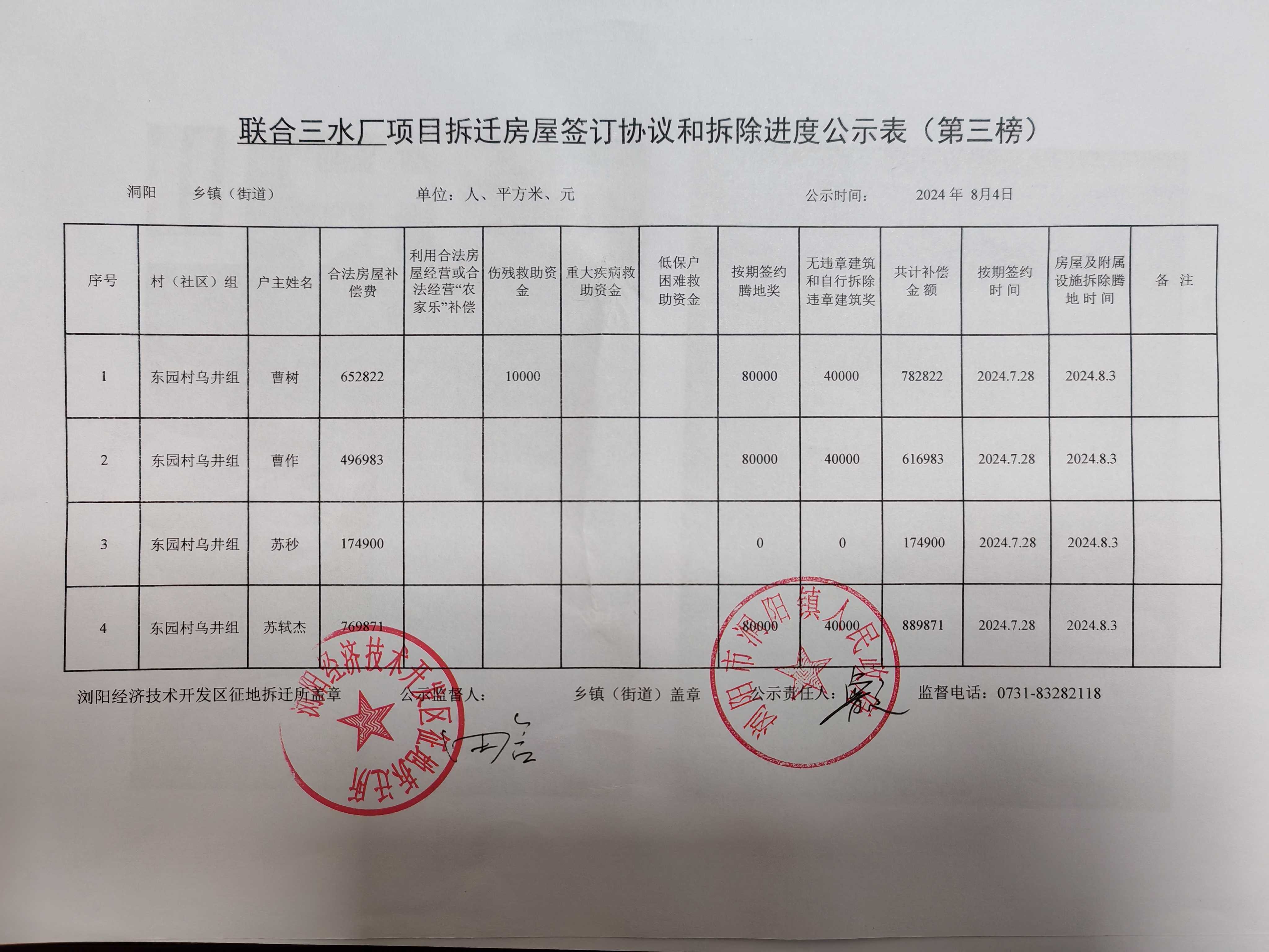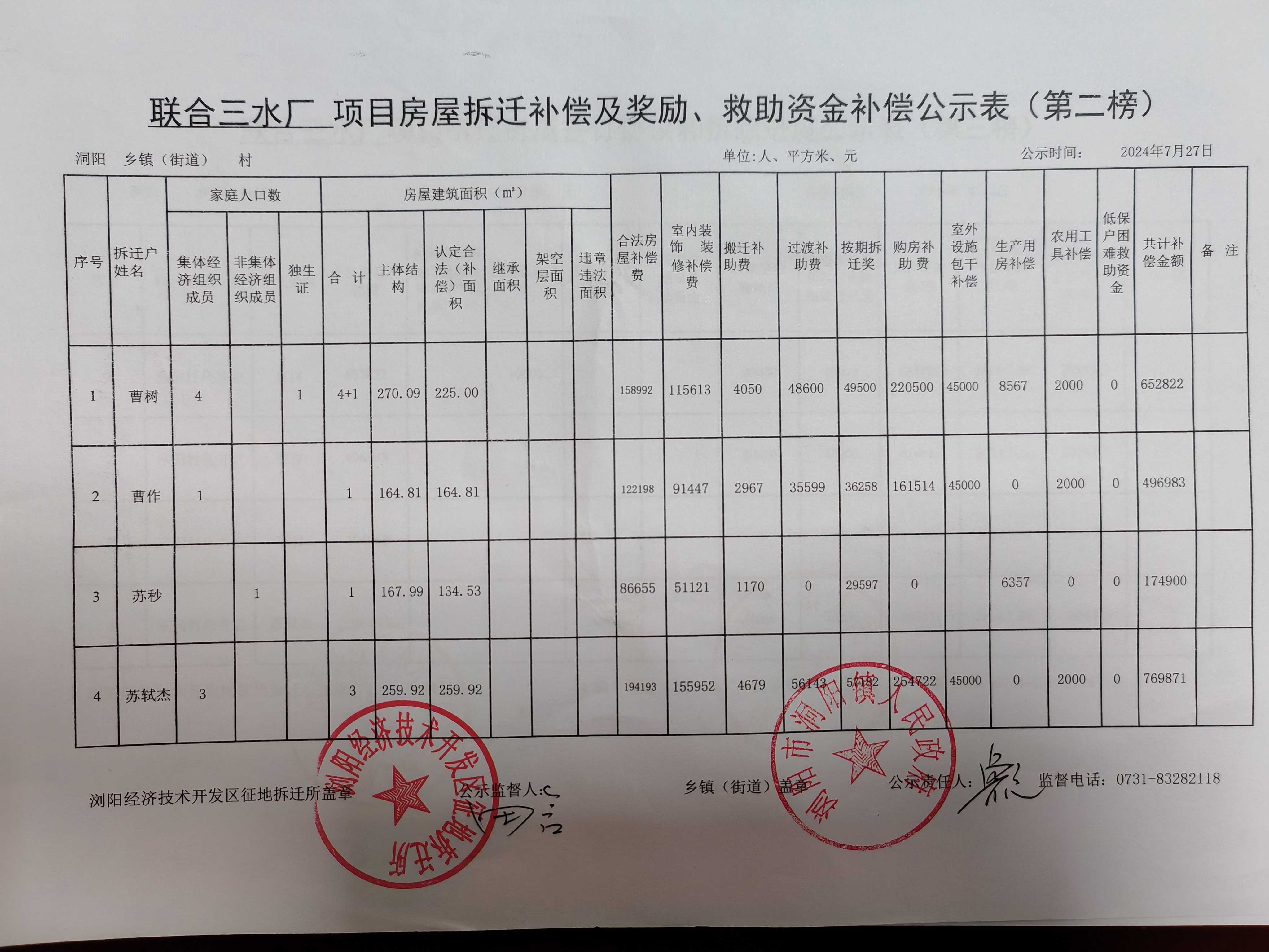 联合三水厂项目房屋拆迁三榜公示表