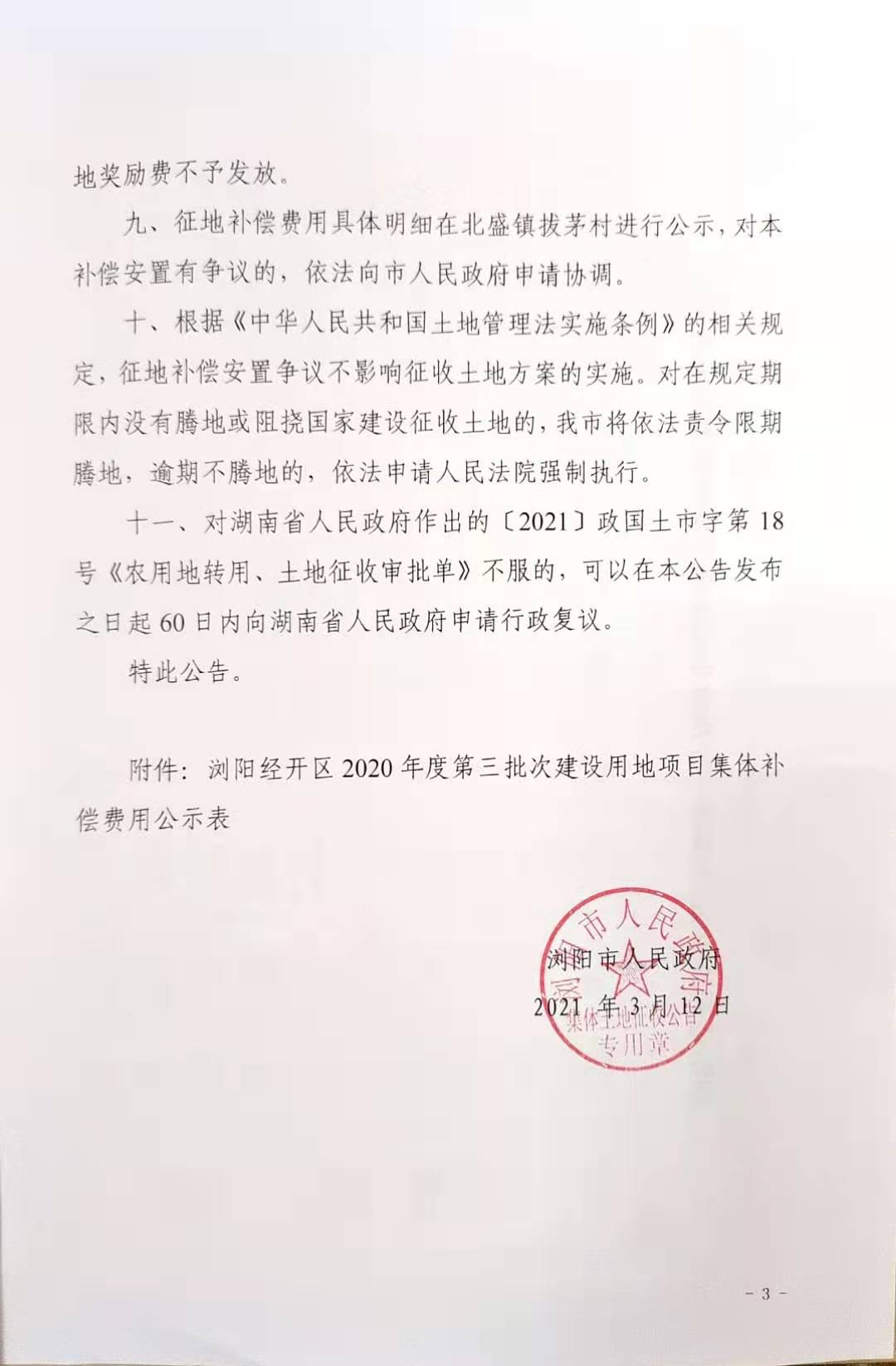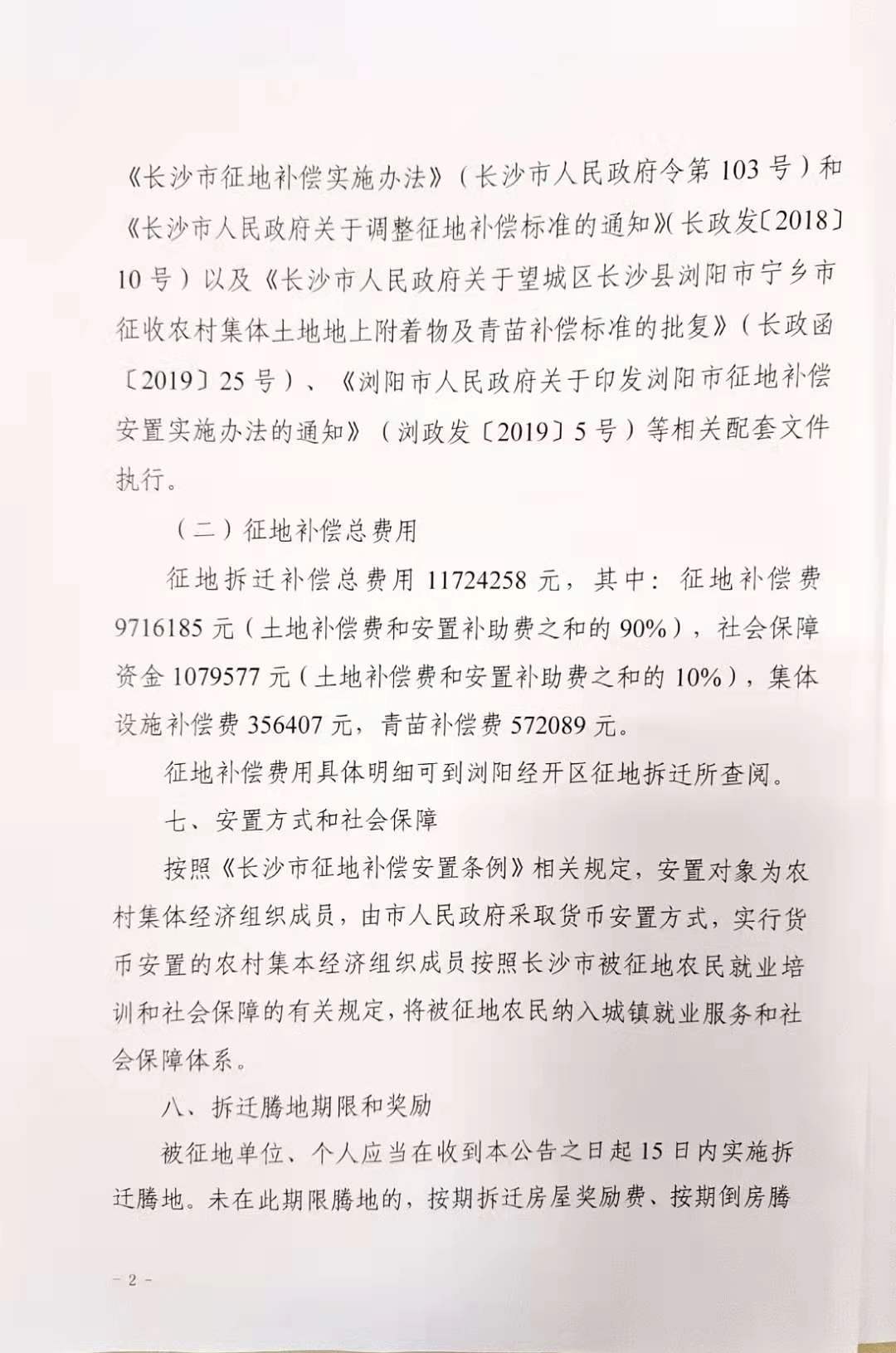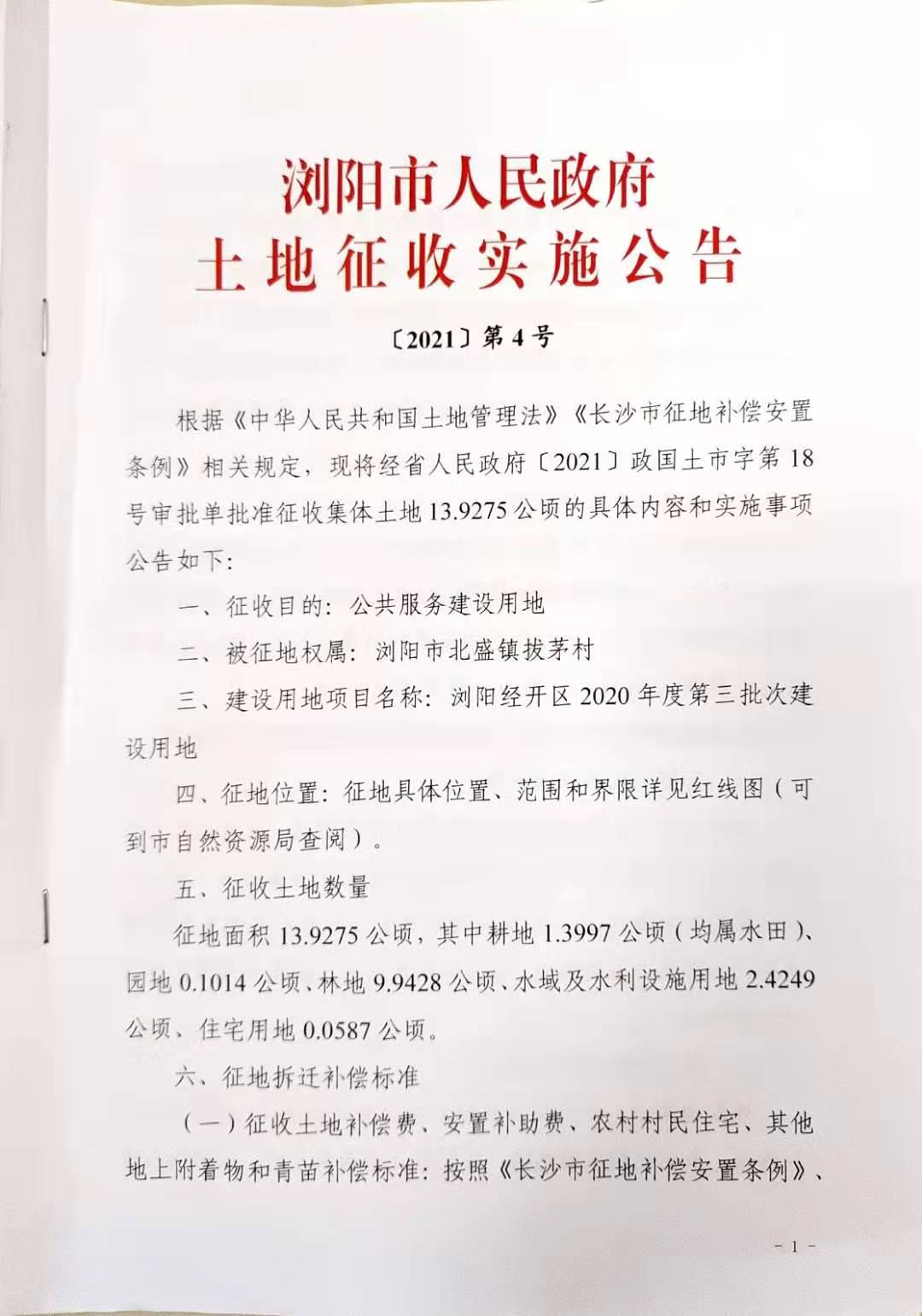 浏阳市人民政府土地征收实施公告[2021]第4号