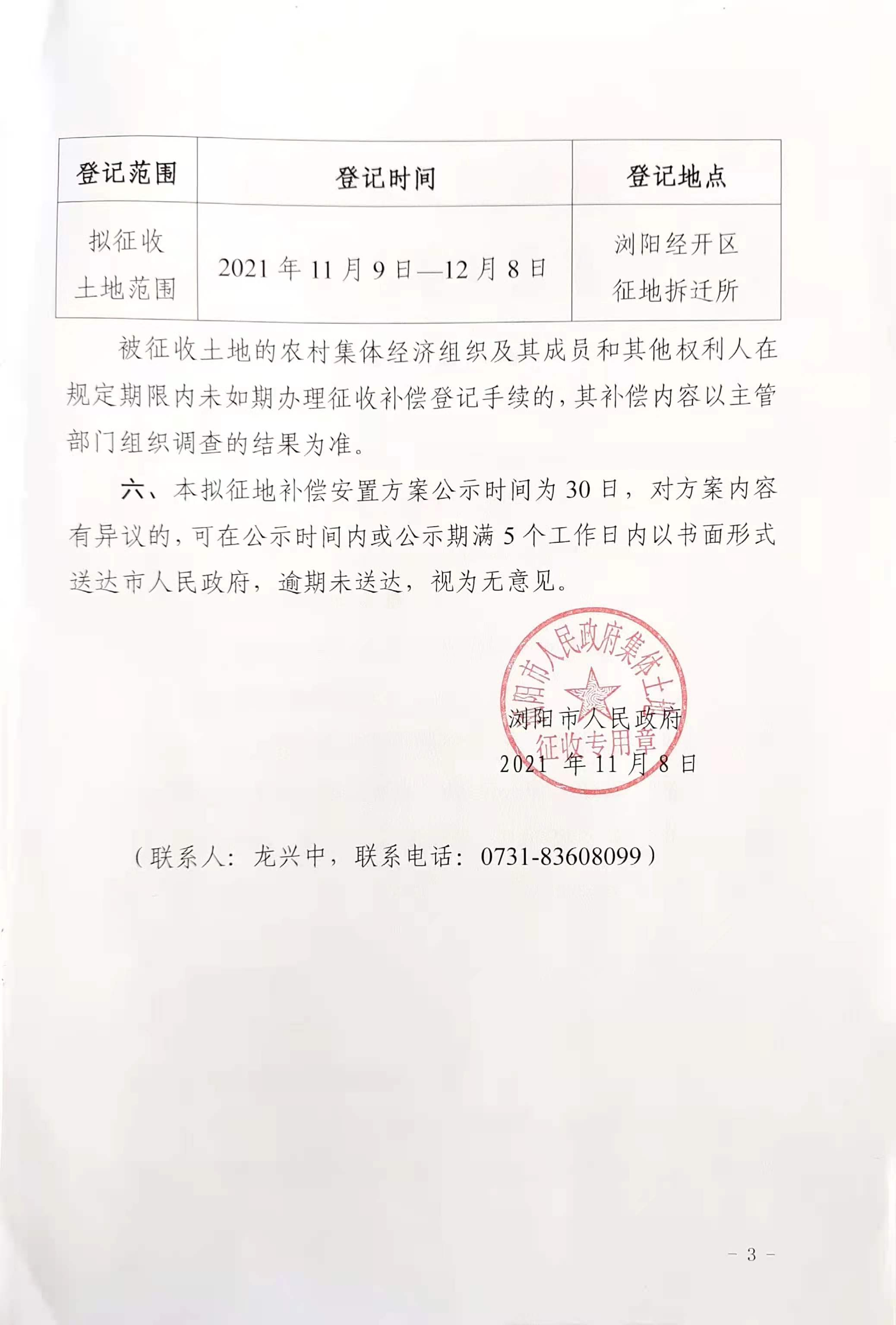 浏阳市人民政府拟征收土地征地补偿安置公告【2021】第23号