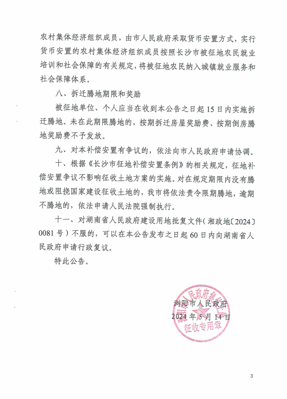 浏阳市人民政府征收土地公告[2024]第22号