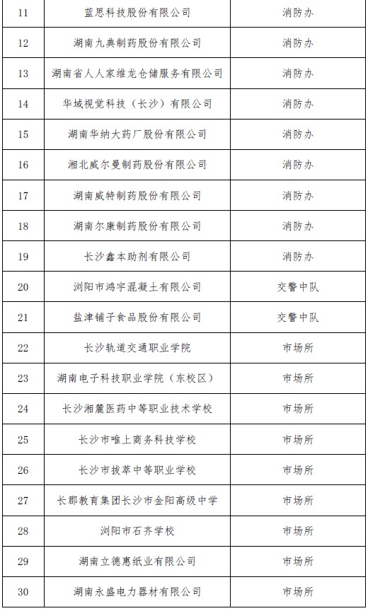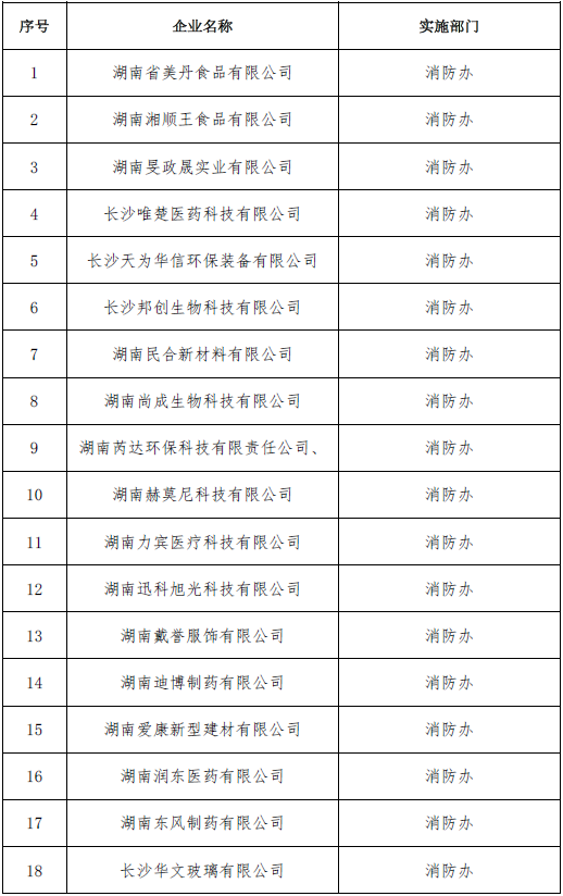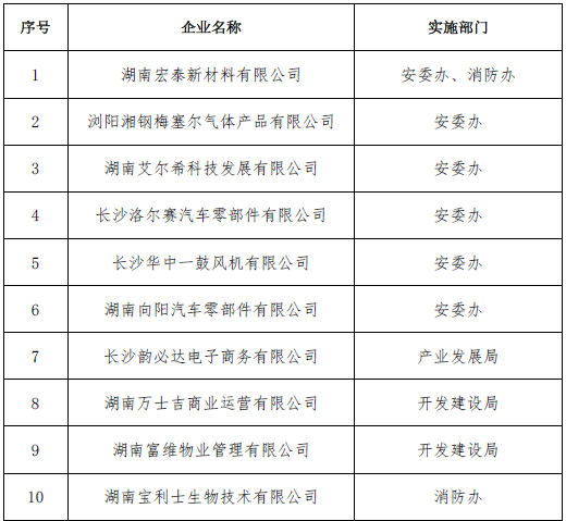 浏阳经开区9月安全生产涉企行政检查及指导服务名单公示