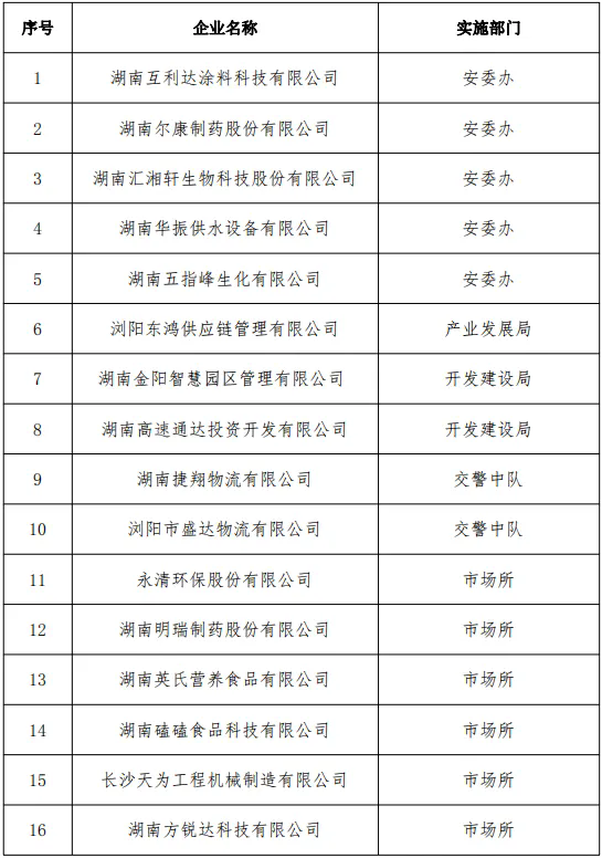 安全生产计划执法名单