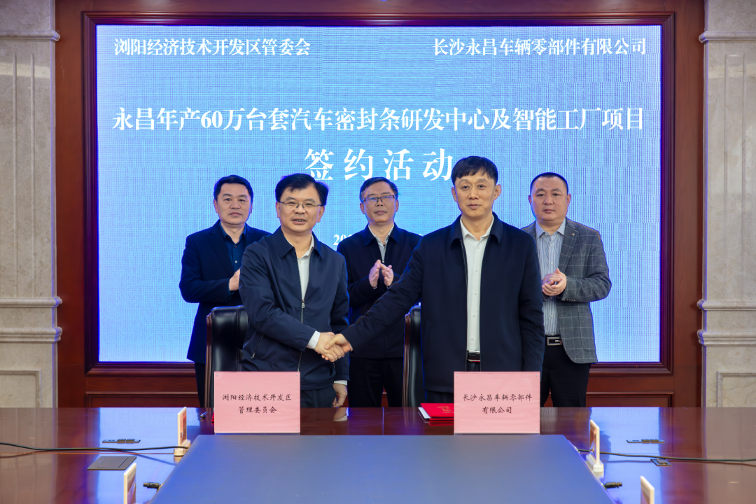 半个月前,长沙永昌车辆零部件有限公司年产60万台套汽车密封条研发中心及智能工厂项目签约浏阳经开区。该项目总投资10亿元,投产后预计年产值6亿元以上。这是长沙永昌在园区的二次投资项目。
