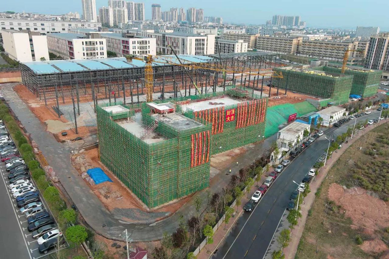 冲刺的号角声同样在省级重大建设项目——方恒智能前沿结构材料及能源装备研发中心、生产基地项目(以下简称“方恒智能装备项目”)上响起。不久前,该项目配套服务楼、生产检测楼完成主体封顶,目前正在进行外墙装饰,项目整体厂房主体进度完成40%,预计6月份即可进行试生产。
