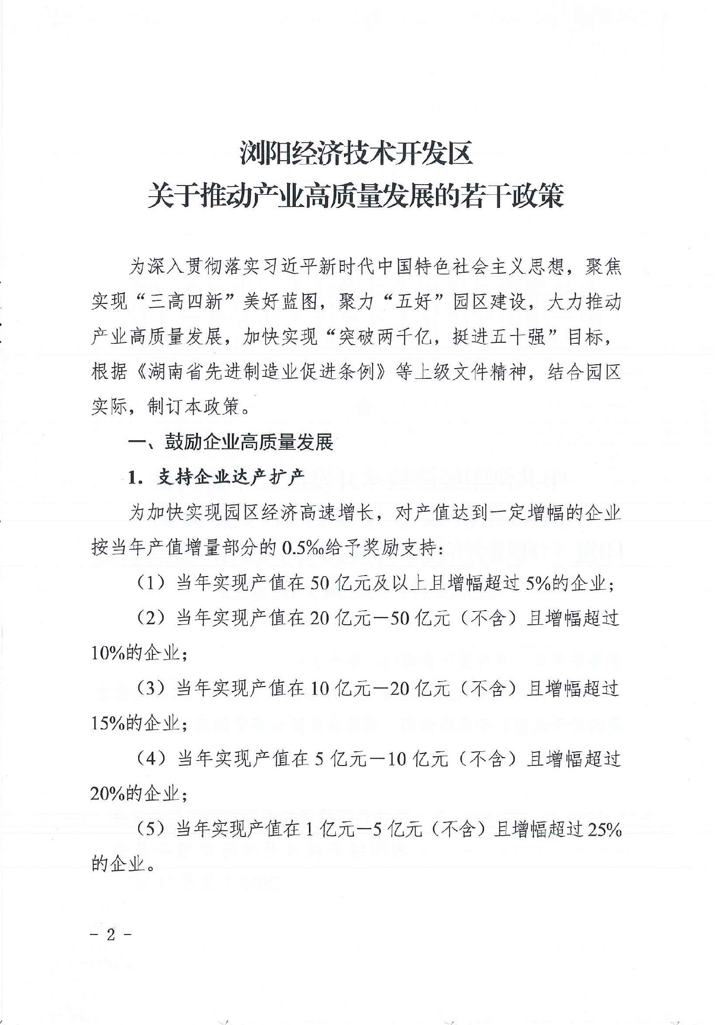 中共浏阳经济技术开发区工作委员会 浏阳经济技术开发区管理委员会印发《浏阳经济技术开发区关于推动产业高质量发展的若干政策》的通知