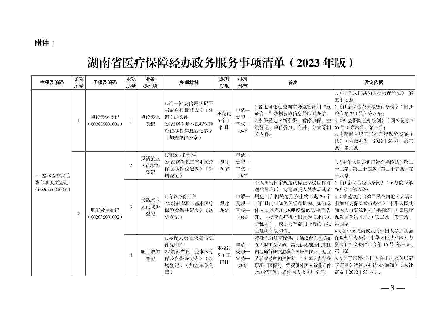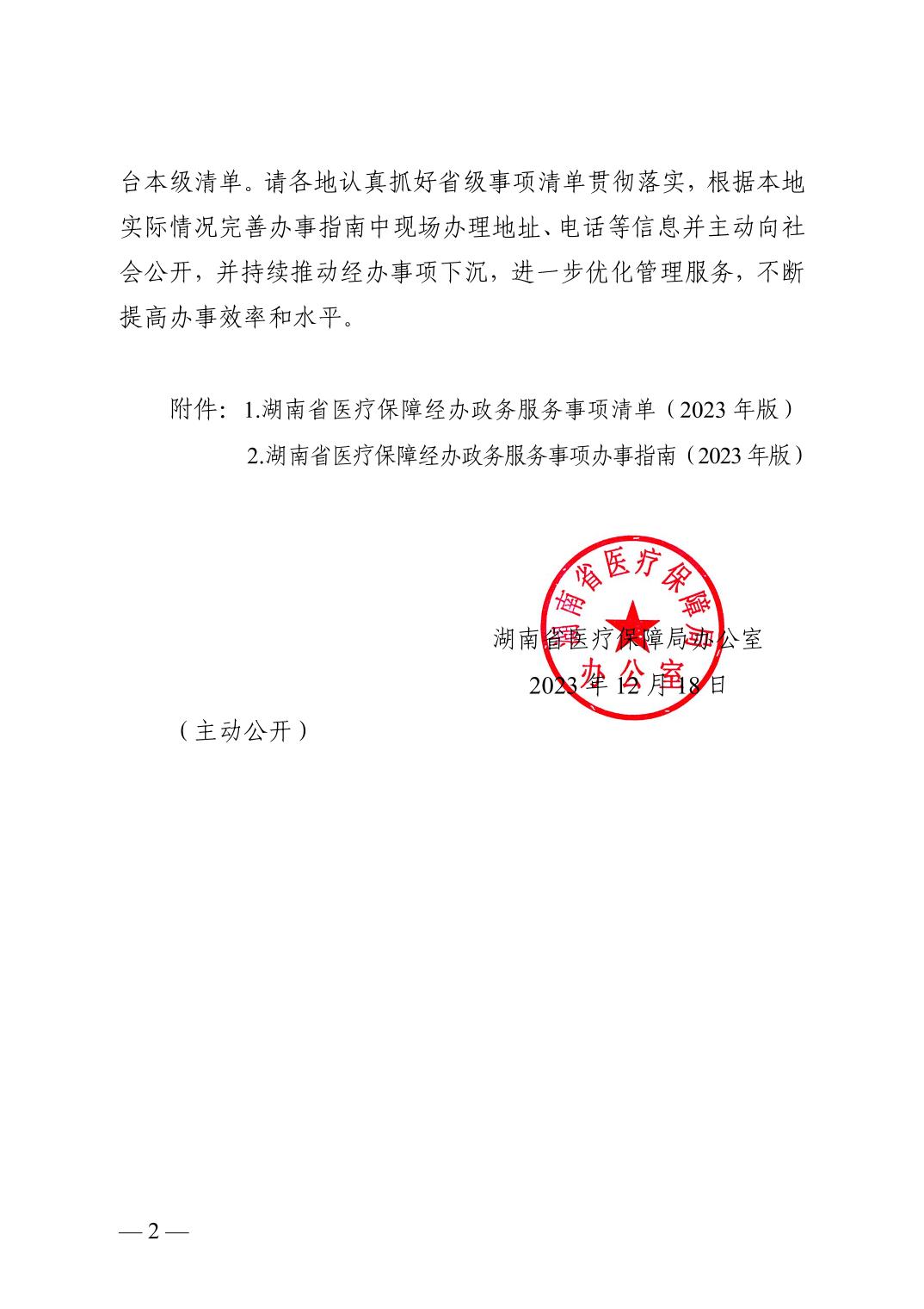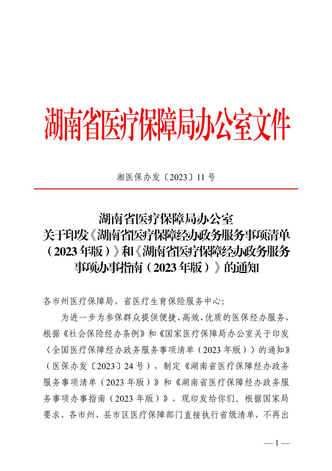 湖南省医疗保障局办公室关于印发《湖南省医疗保障经办政务服务事项清单(2023年版)》和《湖南省医疗保障经办政务服务事项办事指南(2023年版)》的通知