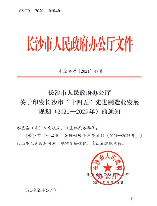 长沙市人民政府办公厅 关于印发长沙市“十四五”先进制造业发展 规划 (2021—2025 年) 的通知