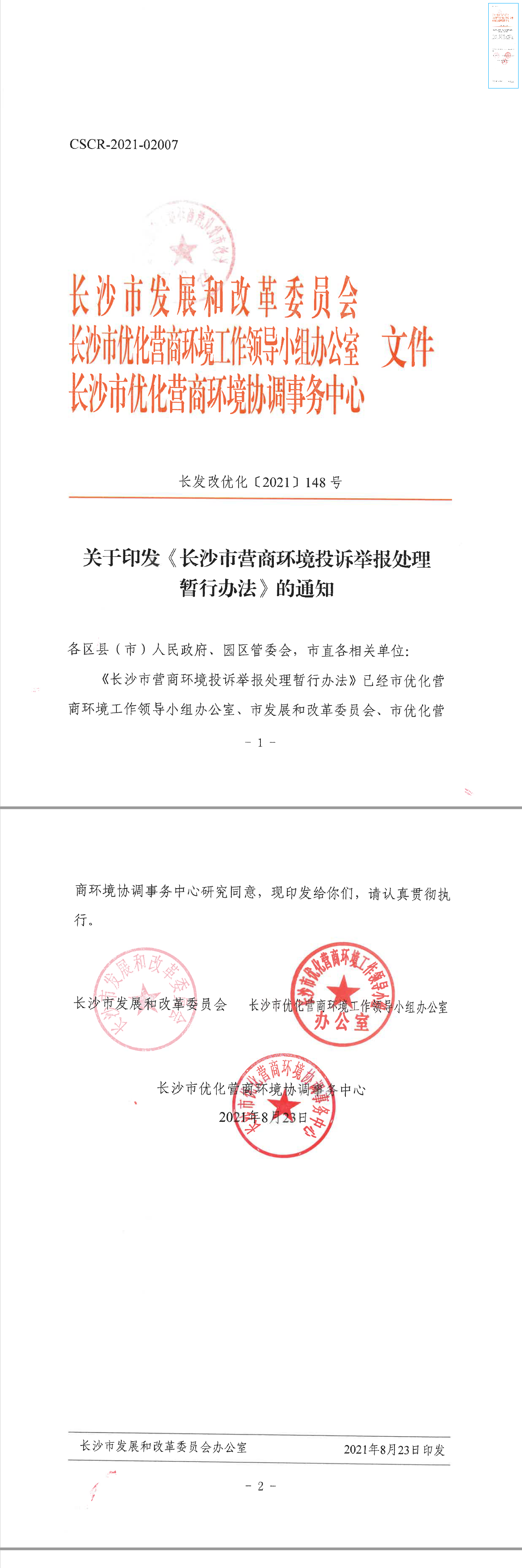 关于印发《长沙市营商环境投诉举报处理暂行办法》的通知.pdf