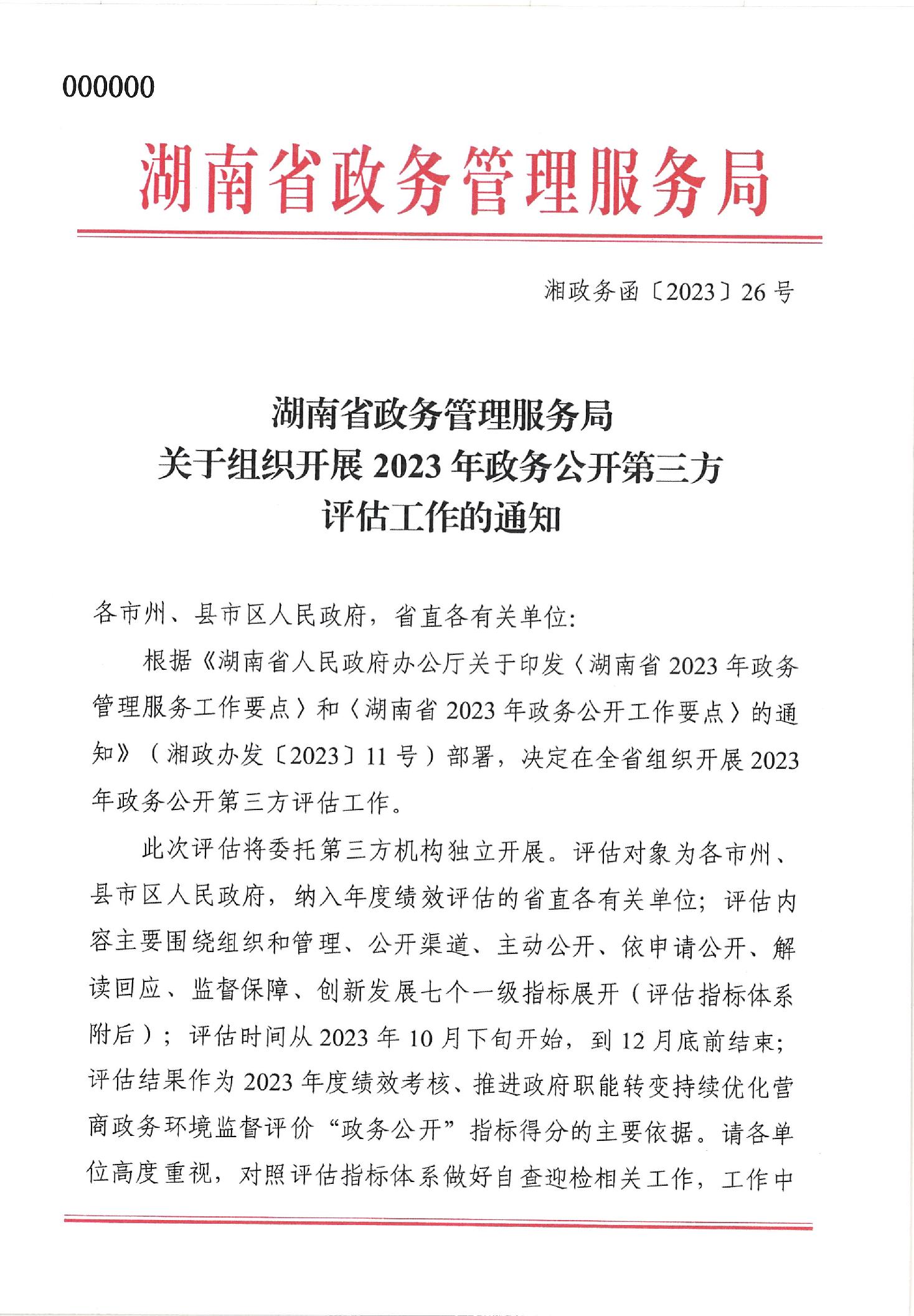 关于组织开展2023年政务公开第三方评估工作的通知(湘政务函〔2023〕26号).pdf