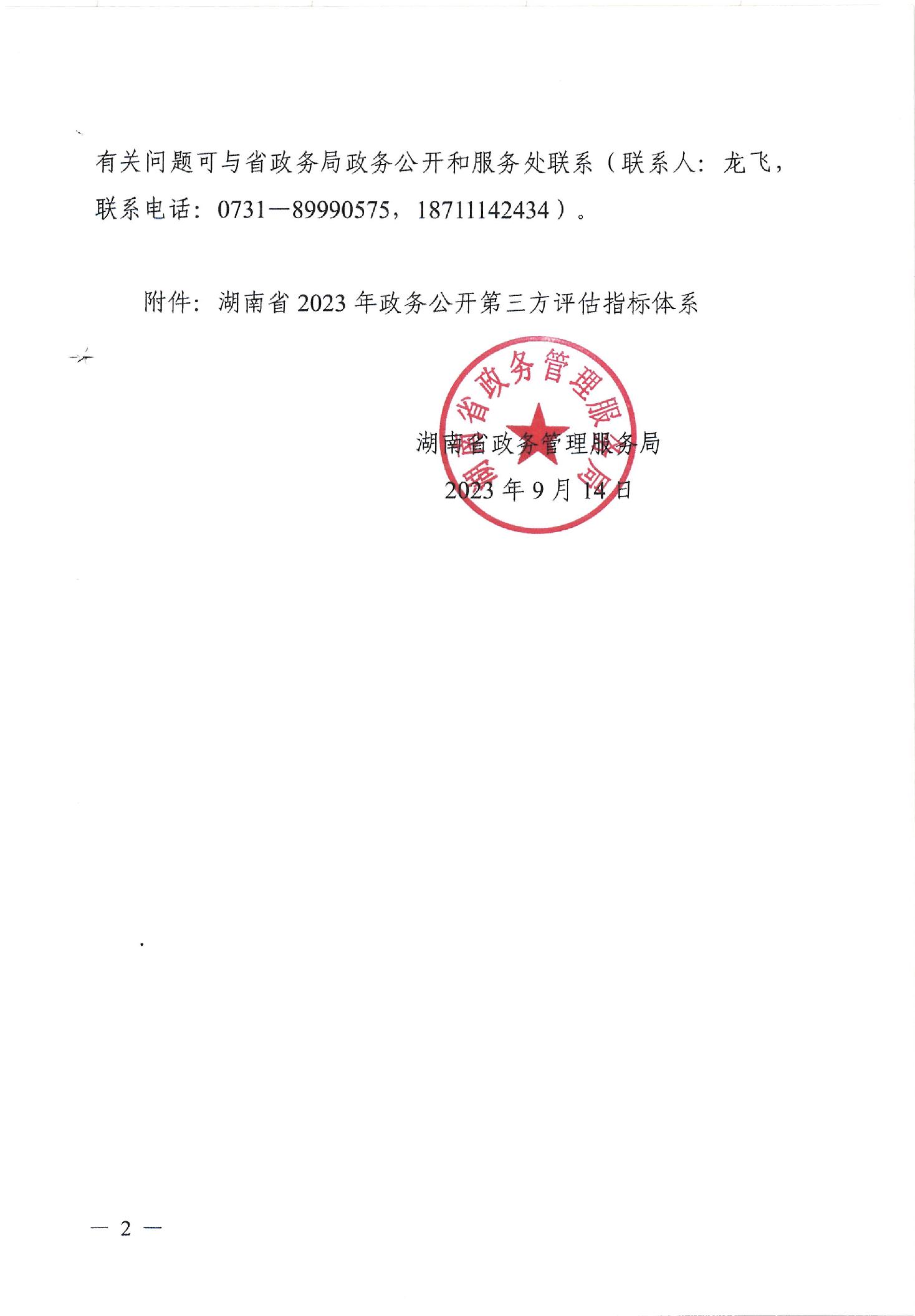 湖南省政务管理服务局关于组织开展2023年政务公开第三方评估工作的通知