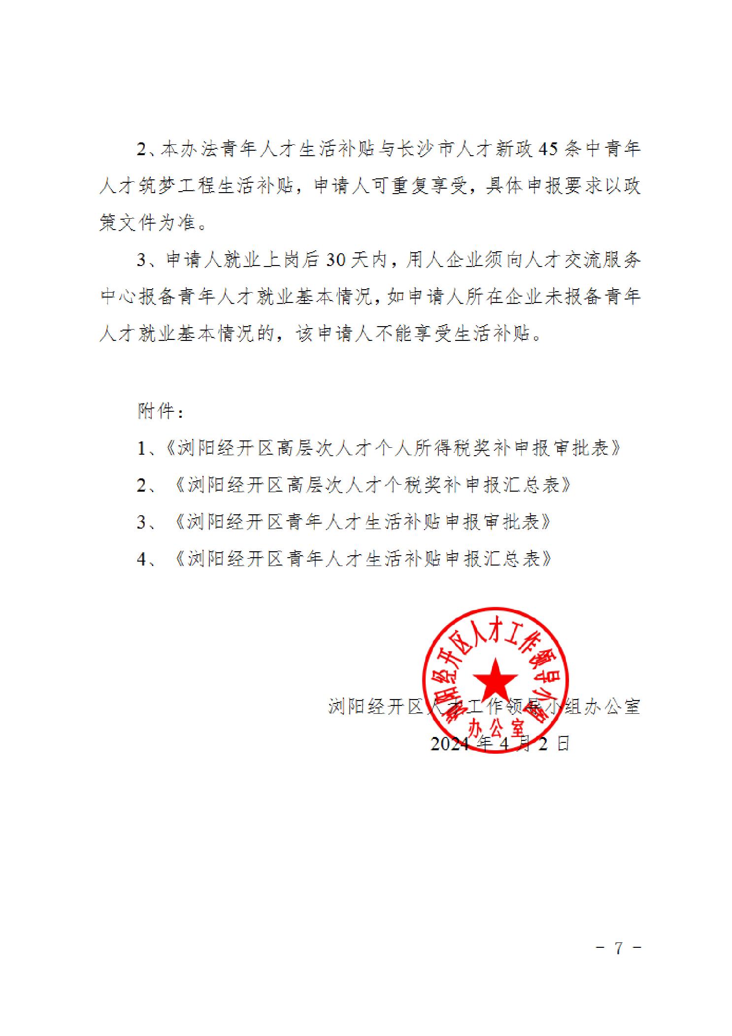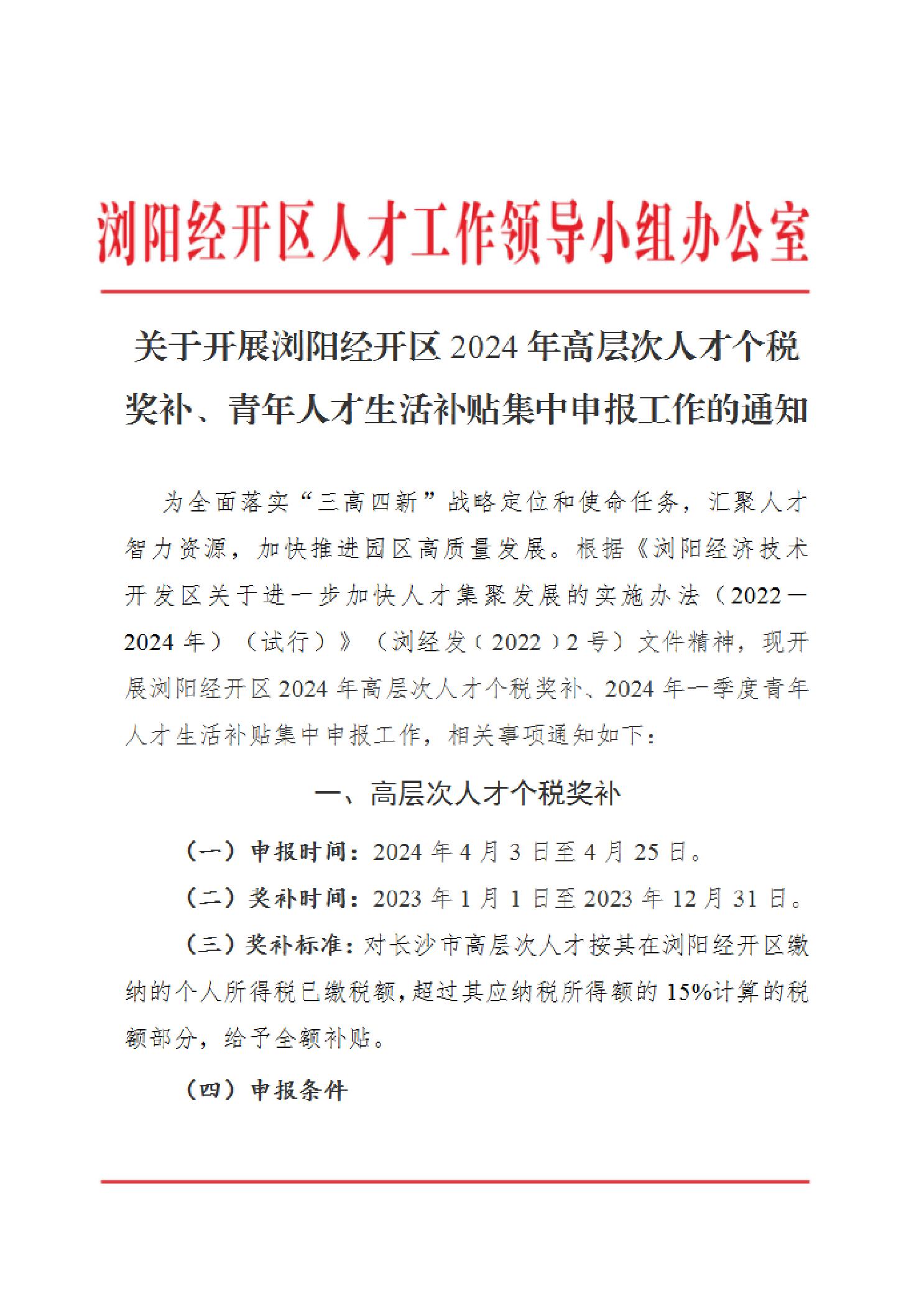 关于开展浏阳经开区2024年高层次人才个税奖补、青年人才生活补贴集中申报工作的通知