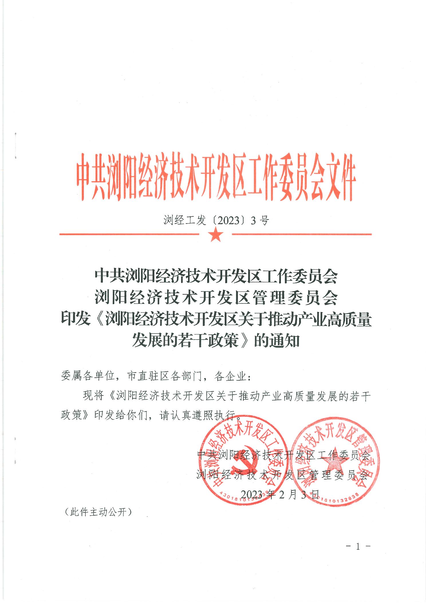 浏阳经济技术开发区管理委员会印发《浏阳经济技术开发区关于推动产业高质量发展的若干政策》的通知