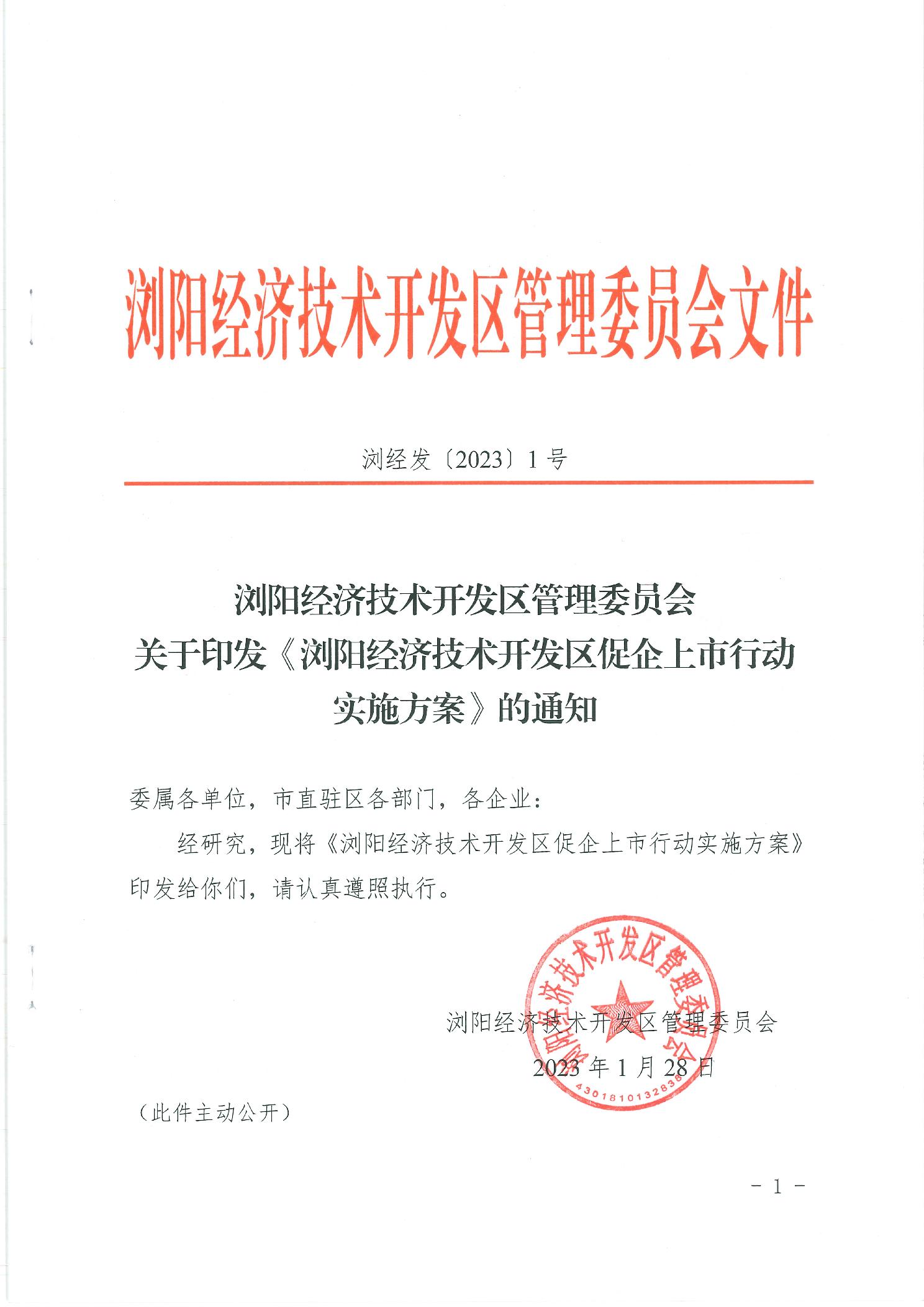 浏阳经济技术开发区管理委员会关于印发《浏阳经济技术开发区促企上市行动实施方案》的通知