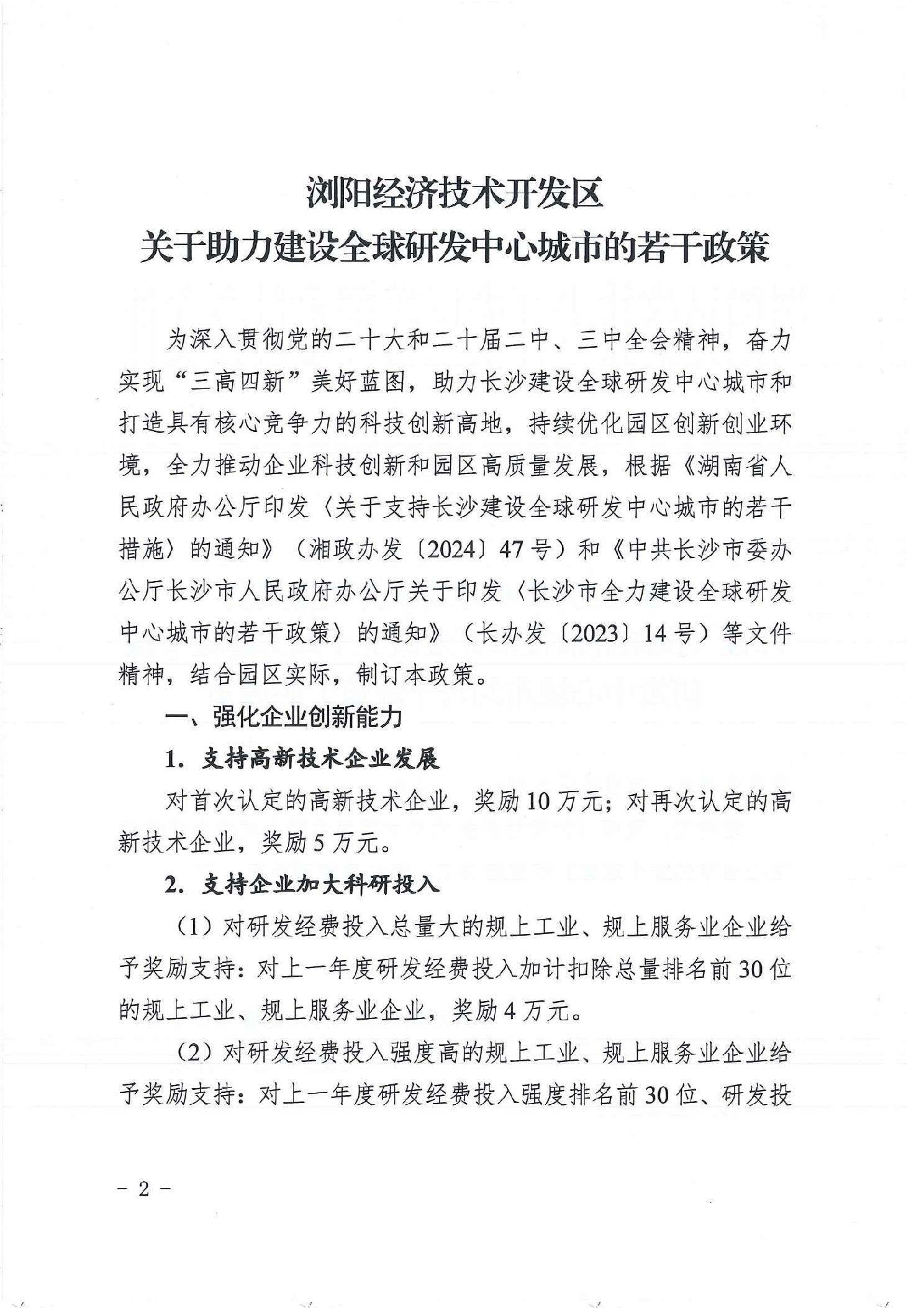 浏阳经济技术开发区管理委员会印发《浏阳经济技术开发区关于助力建设全球研发中心城市的若千政策》的通知